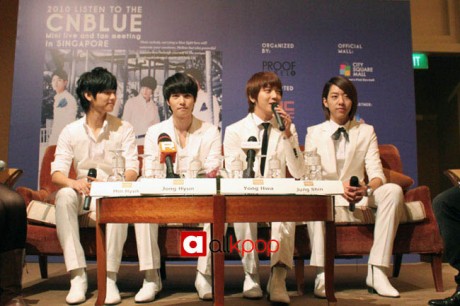 ![]() | [Interview/บทสัมภาษณ์] ซีเอ็นบลู (C.N. Blue) จัดงานแถลงข่าวสำหรับแฟนมีทติ้งที่ประเทศสิงคโปร์ เอามาเรียกน้ำย่อยก่อนไปเจอกันจริง ๆในงาน ![]() เมื่อวันที่ 19 สิงหาคม 2553 ซีเอ็นบลู (C.N. Blue) เดินทางไปถึงประเทศสิงคโปร์ โดยมีแฟนคลับไปรอรับที่สนามบินกันเป็นจำนวนมากกว่าพันคน พร้อมป้ายเชียร์ทำเอาสนามบินเต็มไปด้วยความคึกคัก ทางด้านหน่วยรักษาความปลอดภัยจึงเพิ่มกำลังคนเพื่อรับมือปัญหาต่างๆอีกเช่น กัน สำหรับบัตรเข้าร่วมงานแฟนมีทติ้งจำนวน 2,000 ใบก่อนหน้านี้ก็ถูกจำหน่ายหมดลงอย่างรวดเร็วเช่นกัน หลังจากจบที่ประเทศสิงคโปร์ก็จะเดินทางมายัง ฮ่องกง ประเทศไทย ไต้หวัน และญี่ปุ่น ต่อไป บอยแบนด์ซีเอ็นบลู (C.N. Blue) ได้ทางถึงประเทศสิงคโปร์ในการเดินสายทัวร์ทวีปเอเซียพร้อมเปิดมินิโชว์เคส และจัดงานแฟนมีทติ้งพบปะแฟนคลับ อีกทั้งยังมีกิจกรรมแจกลายเซ็นอีกด้วยเช่นกัน สำหรับงานแถลงข่าวถูกจัดขึ้นในวันที่ 20 สิงหาคม 2553 ที่ผ่านมา ท่ามกลางแฟนเพลงนับพันๆคน โดย ซีเอ็นบลู ได้พูดถึงผลงานเพลง, แฟนคลับ, ชื่อเสียง และเรื่องอื่นๆอีกมากมาย เราจะไปดูบทสัมภาษณ์กันนะครับ คำถาม : คุณคิดยังไงกับแฟนคลับชาวสิงคโปร์? ยงฮวา : สิงคโปร์เป็นประเทศแรกที่เราเริ่มออกสตาร์ในการทัวร์เอเซีย แฟนคลับต่างเป็นมิตรและสนับสนุนพวกเราอย่างดีเลยครับ คำถาม : คุณบอกว่าอักษรย่อคือ ‘B.L.U.E.’ แล้วบอกว่าพวกคุณคือตัวแทนของ Burning, Lovely, Untouchable และ Lovely มันเกี่ยวยังไงกับพวกคุณลองว่ามาดู? ยงฮวา : Burning หมายถึง ความชอบ ซึ่งมันเหมาะสมกับ จงฮยอน ส่วน Lovely (ความน่ารัก) ตัวแทนของ มินฮยอก Untouchable ตัวแทนของ จองชิน สุดท้าย Emotional หมายถึงผมเองครับ (ยงฮวา) เรารวมตัวกันด้วยหลากอารมณ์เพื่อประพันธ์เพลงครับ คำถาม : ความสำเร็จที่ยิ่งใหญ่ที่สุดของคุณคืออะไร? ยงฮวา : การประสบความสำเร็จไม่ได้เป็นอะไรที่เป็นพิเศษหรอกครับ พวกเราในปัจจุบันก็ถือว่าประสบความสำเร็จแล้วครับตอนนี้ คำถาม : คุณเคยแสดงสดตามริมถนนที่ประเทศญี่ปุ่นมาก่อนใช่หรือไม่? ยงฮวา : ใช่ครับ นั่นก็เพราะ เราต้องการพัฒนาทักษะความสามารถเพื่อที่จะแสดงในงานคอนเสิร์ตหรือรายการโชว์แสดงสดต่างๆได้มีศักยภาพครับ คำถาม : ศิลปินคนใดที่เป็นต้นแบบของพวกคุณ? คังมินฮยอก : Maroon 5 จงฮยอน : John Mayer ยงฮวา : Jason Mraz อีจองชิน : Jay-Z ![]() คำถาม : ถ้ามีศิลปินหญิงเข้าร่วมวงซีเอ็นบลูเป็นสมาชิกคนที่ 5 อะไรคือเงื่อนไขหรือวิธีการที่จะต้อนรับเธอคนนั้นเข้ามาในวงได้? ยงฮวา : เรายังไม่เคยคิดเกี่ยวกับเรื่องนี้แต่หวังว่าเธอจะเข้ากับพวกเราได้เป็นอย่างดีครับ คำถาม : ข้อดีและข้อเสียของการมีชื่อเสียงพวกคุณคิดอย่างไร? คังมิ